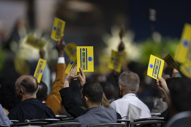 Each business day, after debate and respectful discussion — even in the midst of disagreement — delegates raised their yellow voting cards or used a secure mobile service called Election Buddy to elect leaders and decide on changes to the Church Manual and the Constitution and Bylaws.