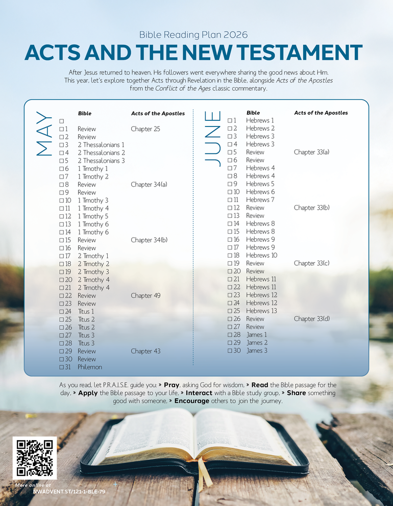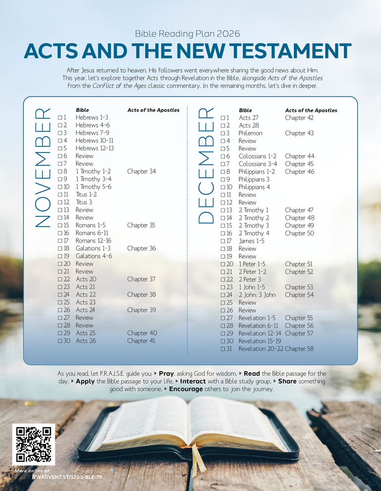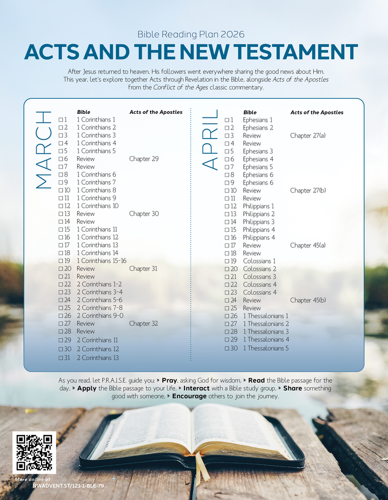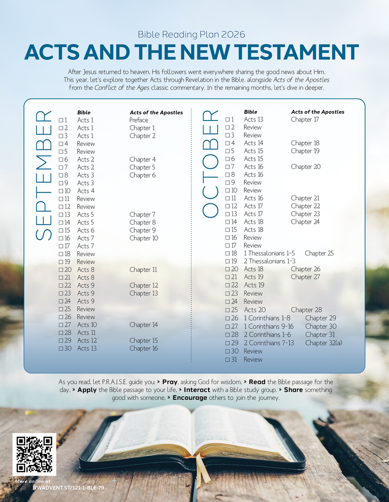 After Jesus returned to heaven, His followers went everywhere sharing the good news about Him. This year, let's explore together Acts through Revelation in the Bible, alongside Acts of the Apostles from the Conflict of the Ages classic commentary.